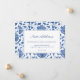 A smart blue and white chinoiserie pattern wedding Change of Address card design. The pattern was handpainted by me in watercolors before being scanned into digital form. It is based on a pattern seen on antique ginger jars.
