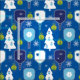 Elegant 💙blue and white🤍 Christmas🎄 pickleball pattern. White, blue and navy blue pickleball paddles, white Christmas trees, green Christmas tree baubles, snowflakes on trendy dark blue background.