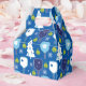 Elegant 💙blue and white🤍 Christmas🎄 pickleball Favour Box .Blue and white pickleball paddles, white Christmas trees with pickleball Christmas tree baubles, snowflakes on trendy dark blue background.