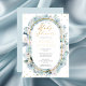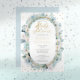 Elegant and classy boho-chic blue and white floral boy "Baby Shower" real gold foil script text design with an elongated rectangular gold foil frame. Name is also in real gold foil. Features a coordinating elongated rectangular floral frame with gorgeous blue and white florals combined with real gold foil confetti dots arranged artfully on the white background. Composite design by Holiday Hearts Designs.