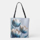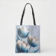 A captivating digital artwork featuring three elegant tulips in shades of blue and white. The intricate detailing and soft gradients create a delicate and modern aesthetic, perfect for nature and floral art enthusiasts