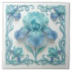 Elegant Blue Art Deco Stylized Lilies Ceramic Tile