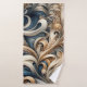 Elegant Blue Beige Baroque Swirl Pattern Bath Towel Set