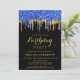 Elegant Blue Black Gold Glitter Drips Birthday Invitation