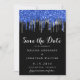 Elegant Blue Black Silver Glitter Drips Wedding Save The Date