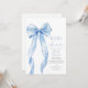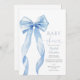 This pretty baby shower invitation features an elegant blue bow and stylish typography. Designed by Thisisnotme©