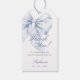 This elegant tag features a charming blue bow perfect for a "something blue" bridal shower. Designed in soft pastel watercolor, it combines romantic handwritten script with trendy whimsical elements. Ideal for a dusty blue bridal shower.