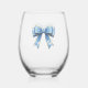 Elegant Blue Bow Engagement Party Invitation Stemless Wine Glass