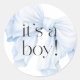 Elegant Blue Bow It's a Boy Favour Classic Round Sticker