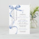 Celebrate the sacred milestone of First Holy Communion with this Elegant Blue Bow & Rosary Invitation. Featuring a sophisticated blue bow paired with a delicate rosary motif, this invitation combines timeless elegance with spiritual significance. Fully customisable, it allows you to personalise all event details, creating a perfect announcement for this cherished occasion.