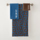 Elegant Blue &Brown Abstract Pattern Custom Name Bath Towel Set