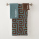 Elegant Blue &Brown Abstract Pattern Monogram name Bath Towel Set