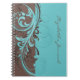 You can personalise the name on this elegant aqua blue and chocolate brown floral personalised journal notepad. A beautiful design! Use it for whatever you want though. It can also make a nice recipe notebook, ledger, wedding planner, etc. Just anything you want to write notes in.