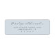 These return address labels feature a simple, elegant design with a light blue background and dark grey text. The layout includes cursive script for names at the top, followed by block serif font for addresses, creating a sophisticated contrast. The minimalistic composition emphasizes clarity and focus, making it perfect for personalised correspondence. The serene colour palette and refined typography convey a sense of tranquillity and formality, ideal for special occasions or everyday use.