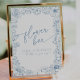 "Flower Bar - make a bouquet to take on your way" sign with elegant blue chinoiserie for a floral french Bridal Shower with "Something blue before I do" theme.