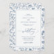 Add timeless elegance to your special day with this chinoiserie-inspired wedding invitation, featuring a delicate blue floral toile border and elegant script.