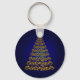 Get into the holiday spirit with this elegant gold tree key chain with a blue background.