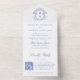 Elegant Blue Crest Chinoiserie Monogram Wedding All In One Invitation