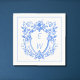 Step back in time with this Elegant Blue Crest Monogram Wedding napkin—For couples who seek a touch of sophistication, featuring a classic crest monogram and lettering in a soft linen blue hue, setting the tone for a memorable and refined celebration. Blue and white wedding design. toile de jouy | chinoiserie
