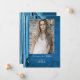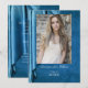 An elegant blue drapery provides the background for this graduation announcement card. The photo and all text are easily changed by using the template. If other changes are desired (different type fonts, colour, size or placement) select "Personalise this design" then select "Edit using Design Too." Additional shapes and sizes of cards are available. See Options. However, to make the design elements fit correctly on a different size, you may need to use the Design Tool. Comes complete with envelopes.