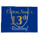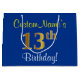 Elegant, Blue, Faux Gold 13th Birthday + Name Large Gift Bag