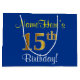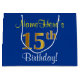 Elegant, Blue, Faux Gold 15th Birthday + Name Large Gift Bag