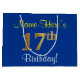 Elegant, Blue, Faux Gold 17th Birthday + Name Large Gift Bag