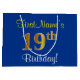 Elegant, Blue, Faux Gold 19th Birthday + Name Large Gift Bag