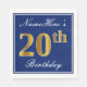 Elegant Blue, Faux Gold 20th Birthday; Custom Name Napkin