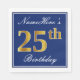 Elegant Blue, Faux Gold 25th Birthday; Custom Name Napkin