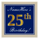 Elegant, Blue, Faux Gold 25th Birthday + Name Poster