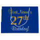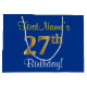 Elegant, Blue, Faux Gold 27th Birthday + Name Large Gift Bag