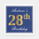 Elegant Blue, Faux Gold 28th Birthday; Custom Name Napkin