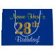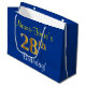 Elegant, Blue, Faux Gold 28th Birthday + Name Large Gift Bag