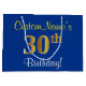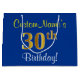 Elegant, Blue, Faux Gold 30th Birthday + Name Large Gift Bag