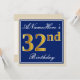 Elegant, Blue, Faux Gold 32nd Birthday + Name Invitation