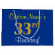 Elegant, Blue, Faux Gold 33rd Birthday + Name Large Gift Bag