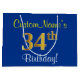 Elegant, Blue, Faux Gold 34th Birthday + Name Large Gift Bag