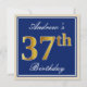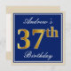Elegant, Blue, Faux Gold 37th Birthday + Name Invitation