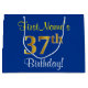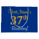 Elegant, Blue, Faux Gold 37th Birthday + Name Large Gift Bag