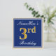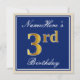 Elegant, Blue, Faux Gold 3rd Birthday; Custom Name Invitation