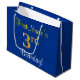Elegant, Blue, Faux Gold 3rd Birthday; Custom Name Large Gift Bag