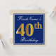 Elegant, Blue, Faux Gold 40th Birthday + Name Invitation