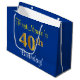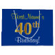 Elegant, Blue, Faux Gold 40th Birthday + Name Large Gift Bag