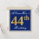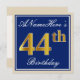 Elegant, Blue, Faux Gold 44th Birthday + Name Invitation