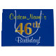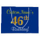 Elegant, Blue, Faux Gold 46th Birthday + Name Large Gift Bag