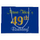 Elegant, Blue, Faux Gold 49th Birthday + Name Large Gift Bag