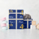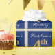 This simple and elegant wrapping paper design features a personalised message like "FirstName’s 4th Birthday" (with the "4th" having a faux/imitation gold-like colouring look) within a blue-coloured square area featuring a simple border outline. The name is in an elegant white-coloured script-like text, and can be customised. Wrapping paper like this could perhaps be used when wrapping birthday gifts for somebody who is celebrating their fourth birthday. [~Z0000221]