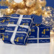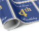 Elegant, Blue, Faux Gold 4th Birthday; Custom Name Wrapping Paper