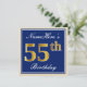 Elegant, Blue, Faux Gold 55th Birthday + Name Invitation